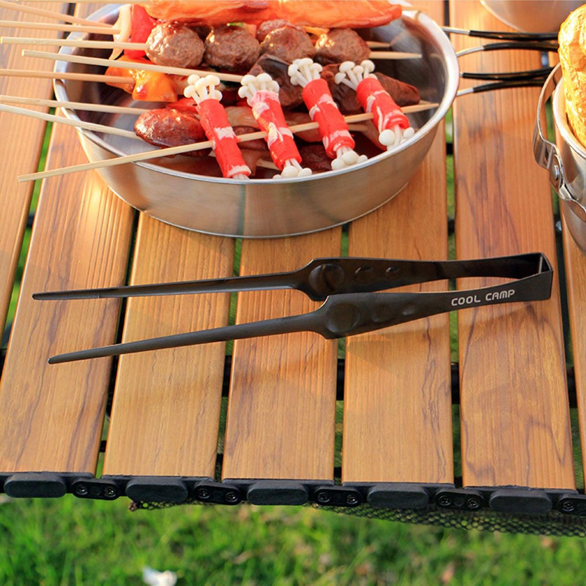Grill ;utensil food clip cooking tongs kitchen grill;accessories clamp toast bbq cup steak buffet;black stainless steel camping camp lightweight;cookware campfire outdoor handy steak tool long;backpacking spatula tweezers picnic anti scalding