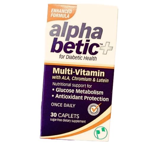 AlphaBetic is the multi-vitamin / mineral supplement recommended by health professionals for people with diabetes. In addition to Lutein, chromium and 20 other diabetes specific nutrients, AlphaBetic contains something unique - a naturally occurring co-enzyme called AlphaLipoic Acid. With more than 40 years of research behind it, this AlphaLipoic Acid has the unique ability to promote glucose metabolism, healthy nerve and eye function and optimumantioxidant protection. AlphaBetic Indication: Once-a-day multi-vitamin / mineral supplement for the general well-being of people with diabetes. For the promotion of: Glucose Metabolism,Healthy Nerve and Eye Function, Healthy Heart Function, Optimum Antioxidant Protection. AlphaBetic is the multi-vitamin / mineral supplement recommended by health professionals for people with diabetes. In addition to Lutein, chromium and 20 other diabetes specific nutrients, AlphaBetic contains something unique - a naturally occurring co-enzyme called AlphaLipoic Acid. With more than 40 years of research behind it, this Alpha Lipoic Acid has the unique ability to promote glucose metabolism, healthy nerve and eye function and optimum antioxidant protection. Alpha Betic Indication: Once-a-daymulti-vitamin / mineral supplement for the general well-being of people with diabetes. For the promotion of:GlucoseMetabolism, Healthy Nerve and Eye Function, Healthy Heart Function,Optimum Antioxidant Protection.
