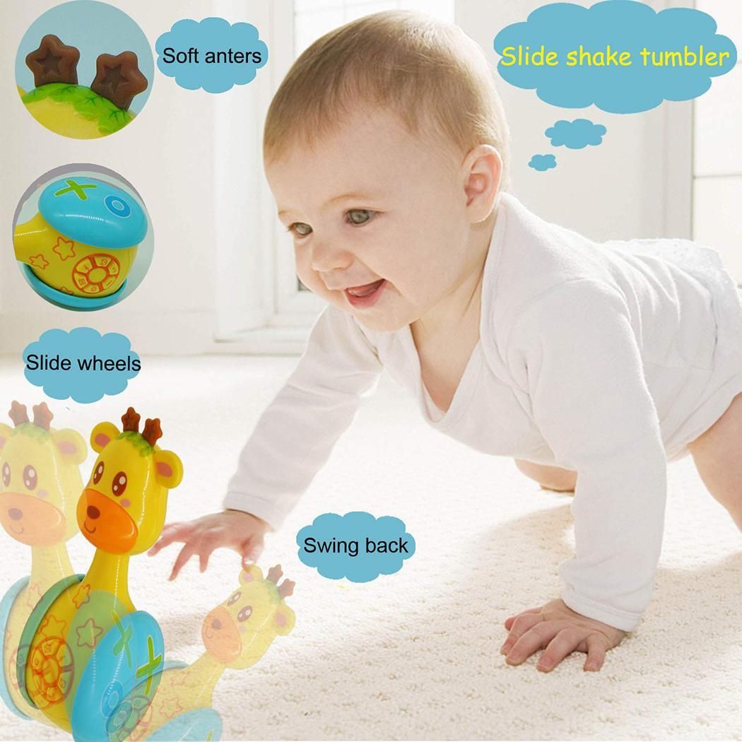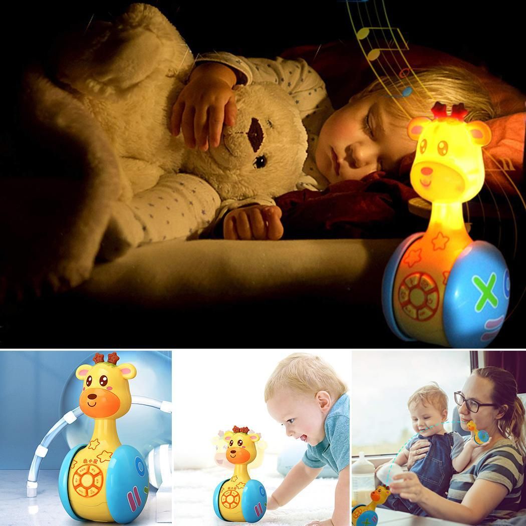 Product Specifications Material: Plastic Color:Yellow Size: 5.5 x 5.5 x 12cm/2.2 x 4.7 x 2.2inch Power Supply: 3 x PR44 Button Batteries Gender: Uni Age Range: 3 Months up Ability Developing: Vision development, Hearing development, Tactility Product Type: Baby Musical Toys Quantity: 1Pcs Features: Unique giraffe design and great size and super light. Development and attract babies to learn to crawl, learn to reach out and touch. Push and shake to enjoy great fun, attract baby to stretch out its hands to touch. Ideal baby musical toy recommended for 3-12 months boys and gis . Package Content: 1 x Baby Musical Toys Note: Due to the difference between different monitors, the picture may not reflect the actual color of the item
