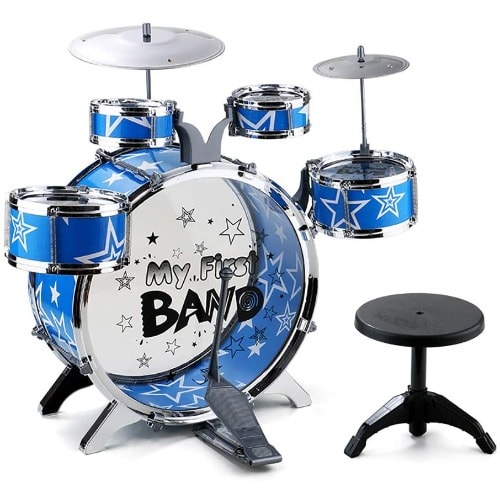 This Jazz Drum Set For Kids With Chair is a fantastic beginner's toy that will get your kid's hammering away and making sweet sweet beats. Stimulate your child's imagination and encourage creativity as a variety of musical experiences. Perfect for both boys and girls and complete with a seat and sticks, your child will spend hours of endless fun, listening, singing along and developing rhythmic skills with this musical educational toy. This awesome drum set is a fun and colorful addition to any child's play time. A perfect way to introduce music and instruments to your child or just a way to relax and have some fun. way to introduce music and instruments to your child or just a way to relax and have some fun.