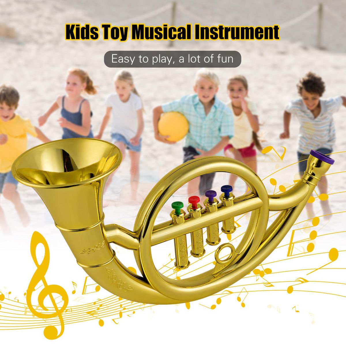 Buy Musical Wind Instruments French Horn for Kids Toddlers ABS Metallic Gold Horn with 4 Colored Keys in Nigeria
