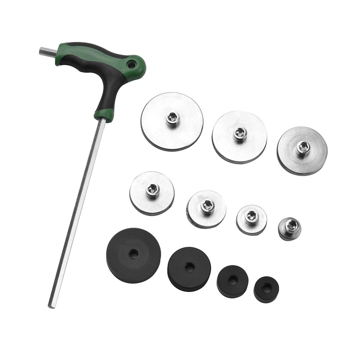 Professional repairing tool set for repairing saxophone sound hole deformation and dents.