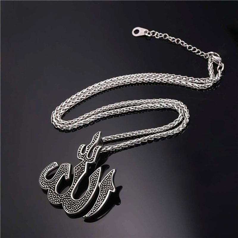 1X Muslim Islam Metal Pewter Allah Quran Charm Pendant Necklace Men Religious Style Jewelry Gift