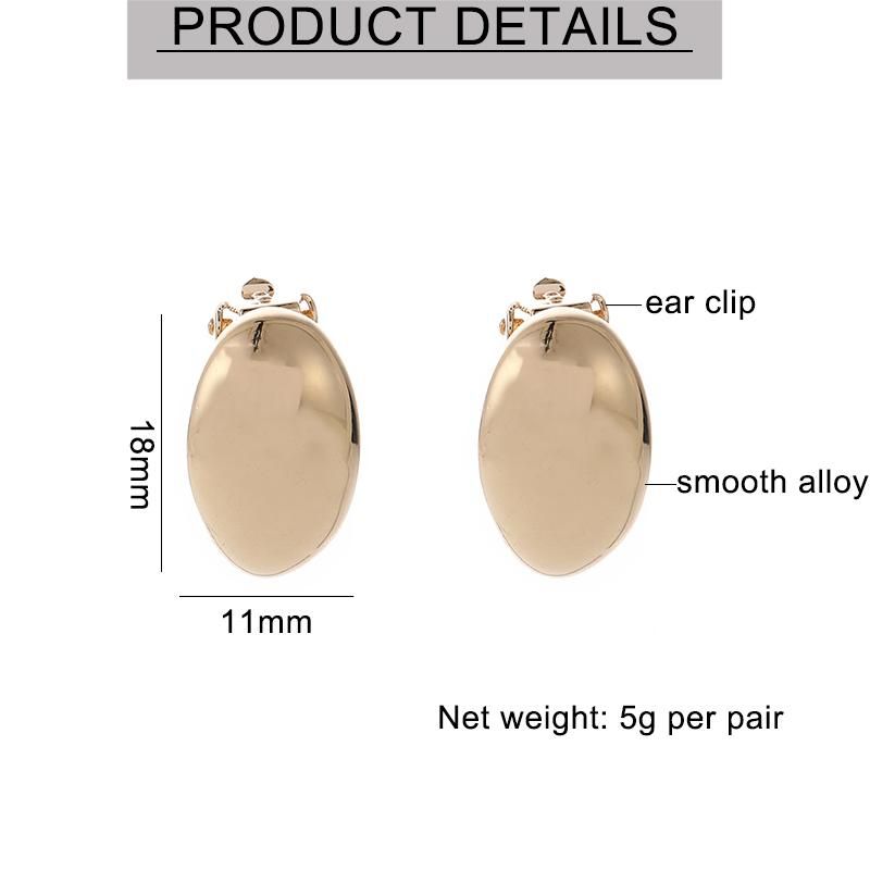 Must Have Golden Vintage Oval Glossy Metal Minimalist Clip on Earrings Non Piercing Cute Ear Clips for Women Party Jewelry Gifts