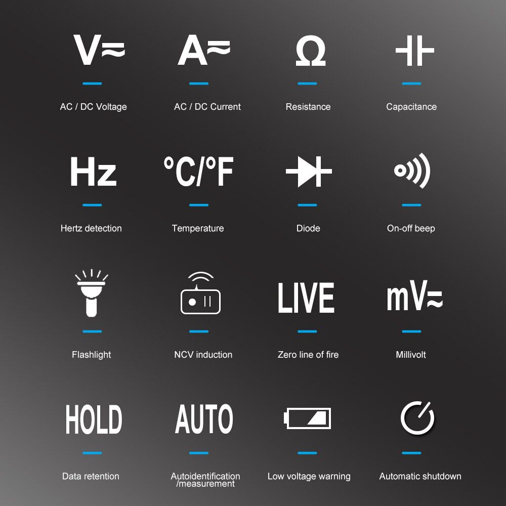 5.Multi-function Test: AC DC Voltage/AC DC Current/Temperature/Frequency /Capacitance/Resistance/Line On/Off/Diode Measurement