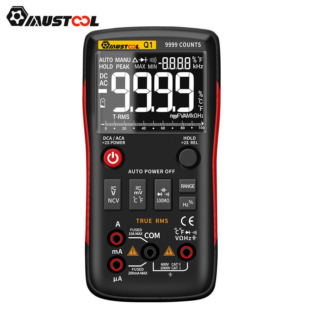 Mustool Q1 True-RMS Digital Multimeter Button 9999 Counts With Analog Bar Graph AC/DC Voltage Ammeter Current Ohm Auto/Manual
