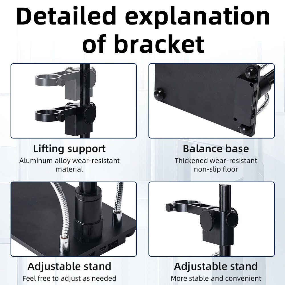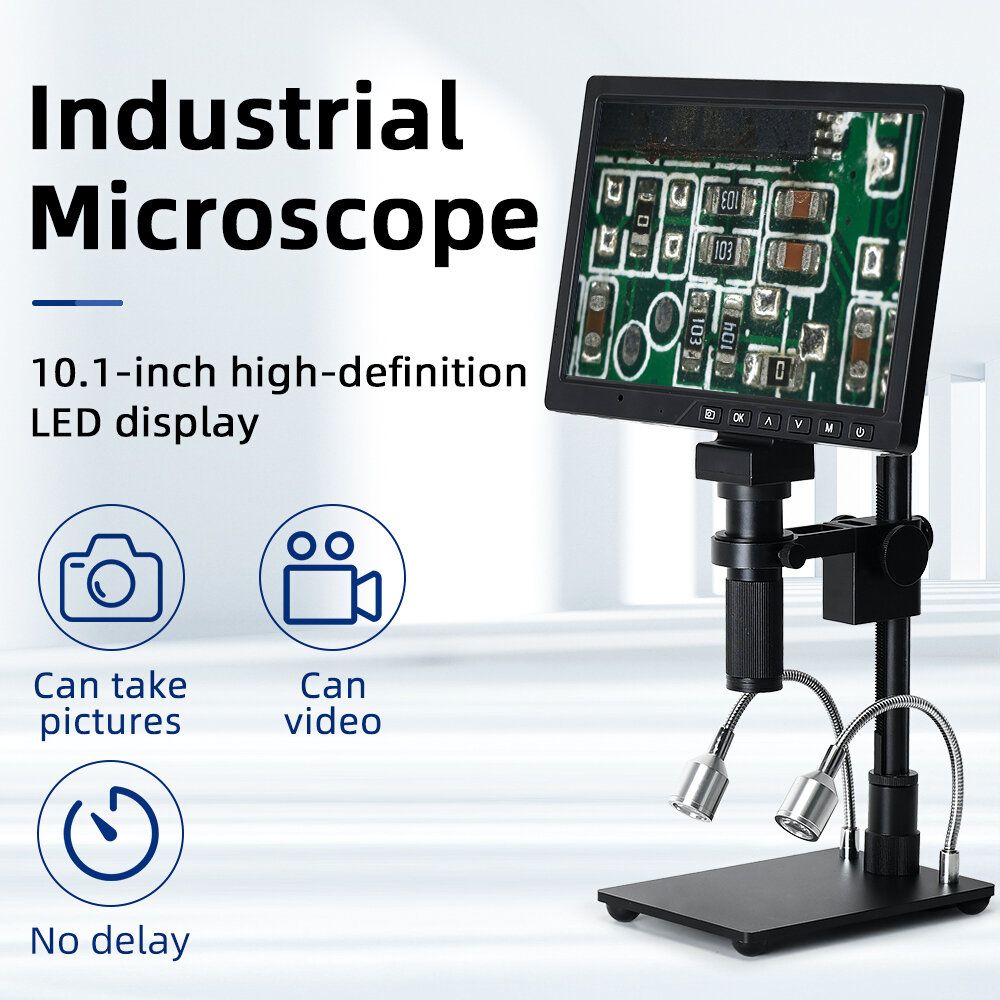 Mustool -1090 10.1 inch LCD HD Video Microscope with 150X C Mount Lens Electronic Microscope Camera with Metal Stand Professional repair Tools