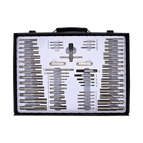 Details: Speifiations: Number of Piees: 115p Material: Tungsten steel(High arbon steel) Pakage dimensions: 17.x13.39x2.56 inhes Shipping weight: 15.45 lbs Tehnial Parameters SAE Tap/Die Sizes: 1/2"-13, 1/2"-20, 1/4"-18, 1/4"-19, 1/4"-20,1/4"-28, 1/8"-27, 1/8"-28, 10-24, 10-32, 12-24, 3/4"-10, 3/4"-16, 3/8"-16, 3/8"-24, 4-40, 5/16"-18, 5/16"-24, 5/8-"11, 5/8"-18, 5-40, 6-32, 7/16"-14, 7/16"-20, 8-32, 9/16"-12, 9/16"-18 METRIC Tap/Die Sizes: M10x1.0, M10x1.25, M10x1.5, M11x1.5, M12x1.25, M12x1.75, M14x1.5, M14x2.0, M16x1.5, M16x2.0, M18x1.5, M18x2.5, M2x0.4, M3x0.5, M4x0.7, M5x0.8, M6x1.0, M7x1.0, M8x1.0, M8x1.25 M9x1.25 Pakage Content 2 X Adjustable Tap Wrenh (M6 to M20 - 1/4" to 3/4", M3 to M12 - 1/16" to 1/2") 1 X T-Handle Tap Wrenh 2 X Die Handle (M25 - 1", M38 - 1-1/2") 5 X Drill Bit (2.5, 3.3, 4.2, 5.0, 6.8) 5 X Damaged Srew Extrator (#1, #2, #3, #4, #5) 1 X Srewdriver 2 X Srew Pith Gauge (Metri, SAE) 1 X Portable Storage Case