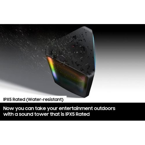 - IPX5 RATED WATER RESISTANT: Now you can take the entertainment outdoors with a sound tower that is IPX5 rated for water resistance*