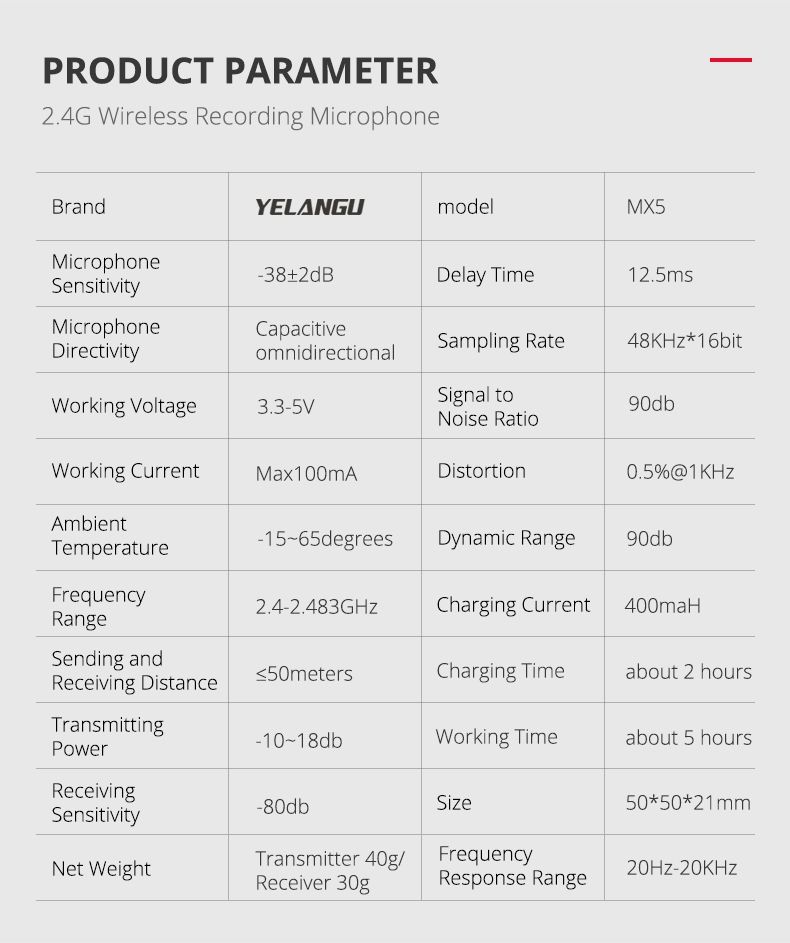 YELANGU MX5 2.4G Live Broadcast Interview Shooting Wireless Recording Microphone
