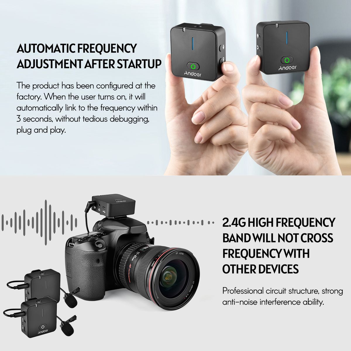 【Paired Transmitter & Receiver】2 Transmitters and 1 receiver have been paired, just turn them on, then the transmitter and receiver will automatically link to the frequency within 3s, plug and play, without tedious debugging.