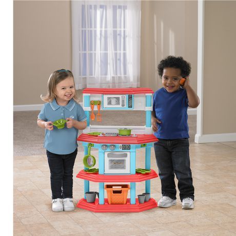LITTLE CHEF IN THE KITCHEN . The American Plastic Toys My Very Own Gourmet Kitchen Playset is fun, interactive, and boosts your little ones imagination. This set features the latest in realistic kitchen design, complete with a microwave, oven, and three burners. Recommended for ages 2 and up.