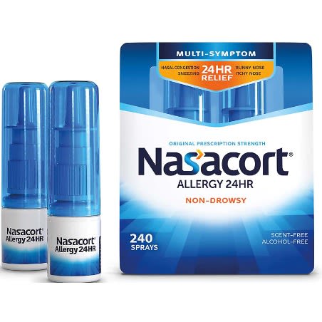 Relieves nasal congestionFor runny nose & sneezingUse for itchy noseWhen allergy season hits, nasal congestion and other nasal allergy symptoms can cause a whole new level of discomfort and stuffiness. Start breathing easier with Nasacort 24HR Allergy Nasal Spray for Adults. Nasacort contains the #1 doctor recommended type of medicine for nasal allergy congestion. Unlike an antihistamine, this allergy relief nasal spray starts working at the source to relieve even your worst nasal allergy symptoms, including nasal congestion, sneezing, and runny or itchy nose for a full 24 hours. Nasacort Adult Non-drowsy Allergy Nasal Spray is non-addictive and safe to use with blood pressure medication when used as directed*. Best of all, this alcohol-free nasal allergy spray is nose friendly with no scent and no harsh taste. Get the relief you need with 24-hour non-drowsy nasal allergy congestion relief from Nasacort. Breathing is believing with Nasacort 24HR Non-drowsy Allergy Nasal Spray.*Please consult with your doctor before taking Nasacort with any other medication.Contains two (2) 0.57 fl. oz. spray bottles of Nasacort 24HR Allergy Nasal Spray for Adults (120 Sprays).Nasacort Nasal Allergy Spray provides a full 24 hours of relief from the worst nasal allergy symptoms, such as congestion.Helps relieve nasal allergy congestion, sneezing, and runny or itchy nose, without making you drowsy.This nose-friendly nasal allergy spray has no scent and no harsh taste.Nasacort contains the #1 doctor recommended type of medicine for nasal allergy congestion.Made in FranceRead insert (inside package) on how to:get a new bottle ready (primed) before first useprime bottle again if not used for more than 2 weeksuse the sprayclean the spray nozzleAdults and children 12 years of age and older:once daily, spray 2 times into each nostril while sniffing gentlyonce your allergy symptoms improve, reduce to 1 spray in each nostril per dayChildren 2 to under 12 years of age.the growth rate of some children may be slower while using this product. Talk to your child's doctor if your child needs to use the spray for longer than 2 months a year.Children 6 to under 12 years of age.an adult should supervise useonce daily, spray 1 time into each nostril while sniffing gentlyif allergy symptoms do not improve, increase to 2 sprays in each nostril per day. Once allergy symptoms improve, reduce to 1 spray in each nostril per day.Children 2 to under 6 years of age.as adult should supervise useonce daily, spray 1 time into each nostril while sniffing gentlyChildren under 2 years of age. do not use.do not use more than directedif you forget a dose, do not double the next dosedo not spray into eyes or mouthif allergy symptoms do not improve after one week, stop using and talk to a doctordo not use for the common coldshake well before each useOther Information.do not use if sealed package is torn or openedkeep package and insert. They contain important informationnasal congestionrunny nosesneezingitchy noseIngredientsSprayActive Ingredients: Triamcinolone Acetonide (glucocorticoid) - 55 mcg (Allergy Symptom Reliever)Inactive Ingredients: Benzalkonium Chloride, Carboxymethylcellulose Sodium, Dextrose, Edetate Disodium, Hydrochloric Acid or Sodium Hydroxide (for pH Adjustment), Microcrystalline Cellulose, Polysorbate 80, Purified Water. Uses temporarily relieves these symptoms of hay fever or other upper respiratory allergiLegal Disclaimer: Actual product packaging and materials may contain more and/or different information than what is displayed on our website. Therefore, we recommend that you always read labels, warnings, and directions before using or consuming a product. For additional information about a product, please contact the manufacturer or the seller. Content on rehmie.com.ng is for reference purposes and is not intended to substitute for advice given by a physician, pharmacist, or other licensed health-care professional. You should not use this information as self-diagnosis or for treating a health problem or disease. Contact your health-care provider immediately if you suspect that you have a medical problem. Information and statements regarding dietary supplements have not been evaluated by the National Agency For Food and Drug Administration and Control (NAFDAC) and are not intended to diagnose, treat, cure, or prevent any disease or health condition. rehmie.com.ng assumes no liability for inaccuracies or misstatements about products.