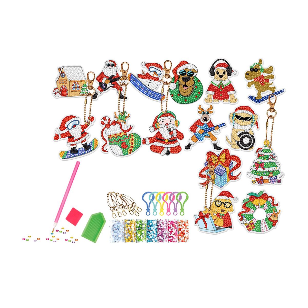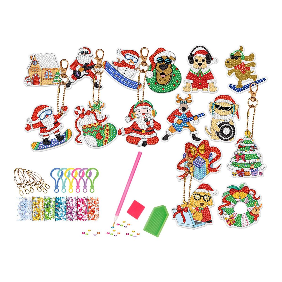 【Christmas Box】: Christmas theme rhinestone pendants DIY set, various shapes, bright colors, unique and lovely, meet your different Christmas decoration needs.