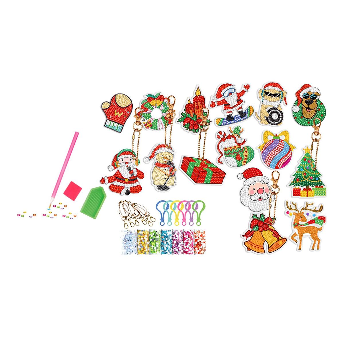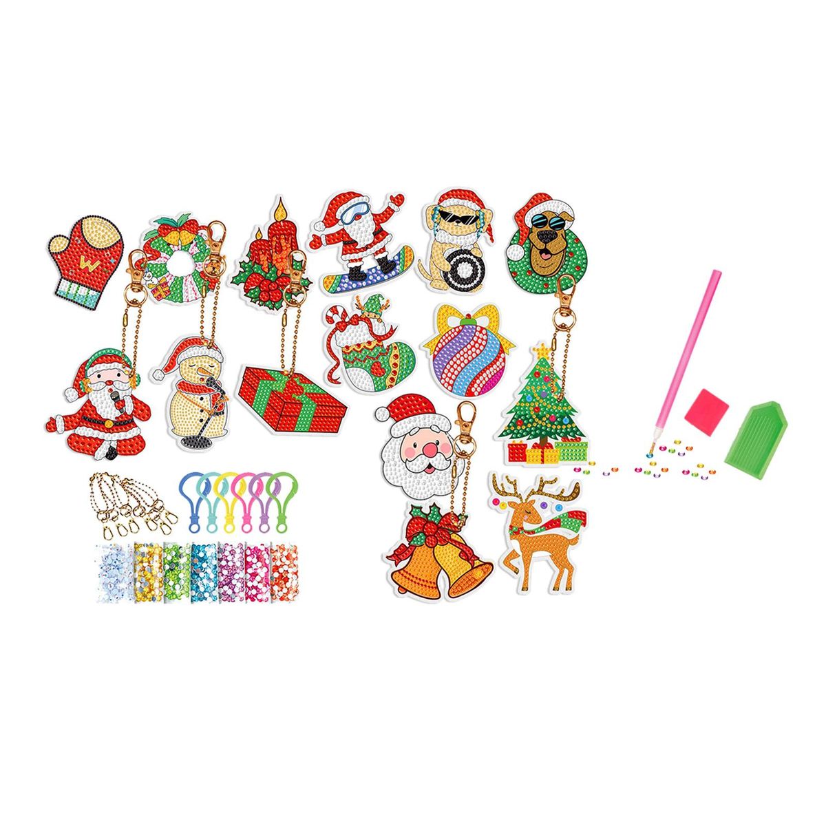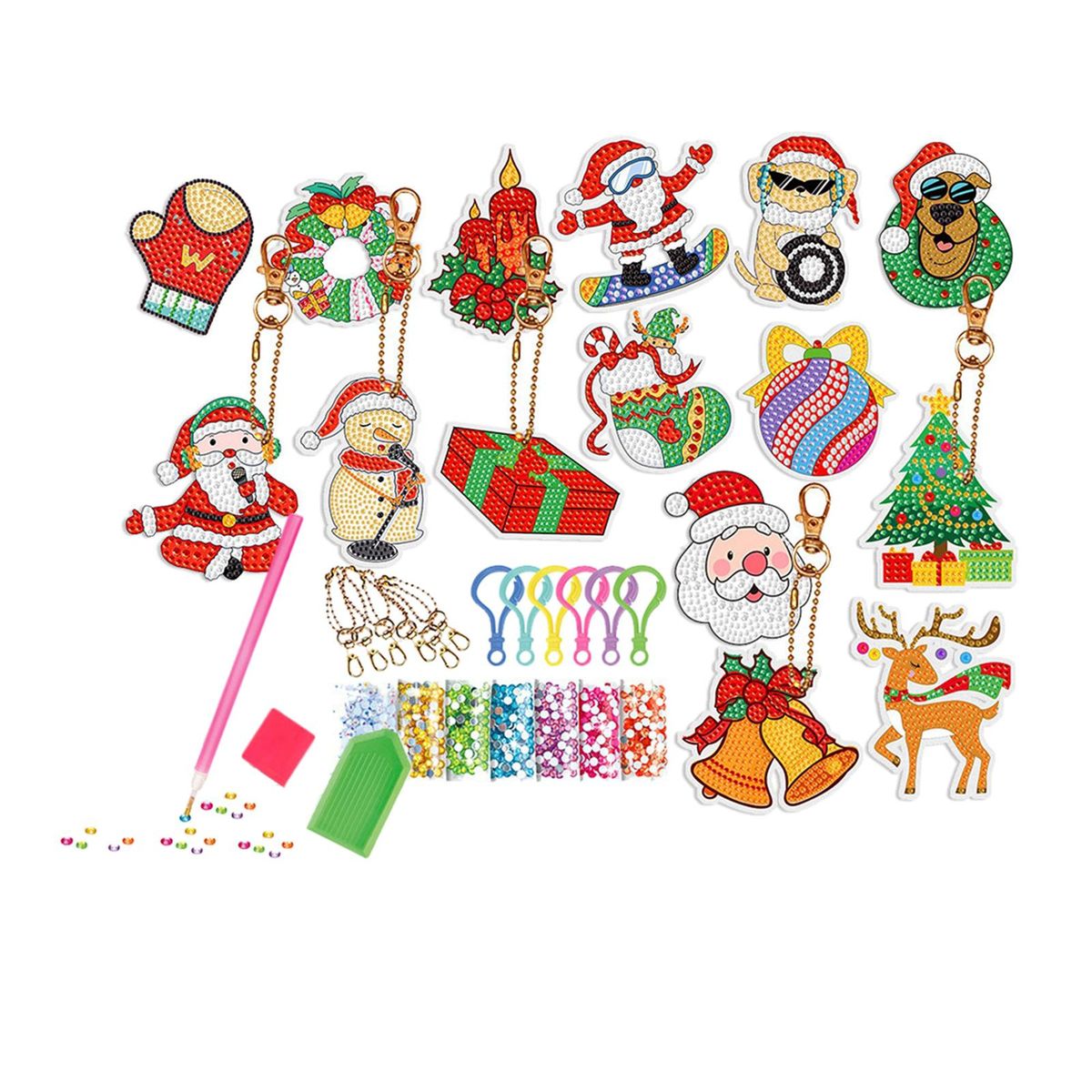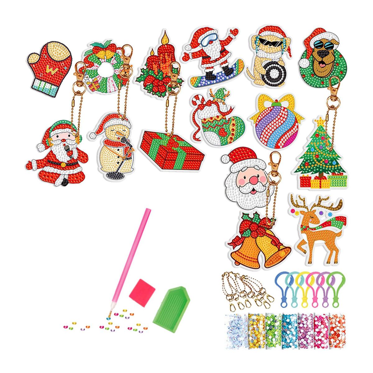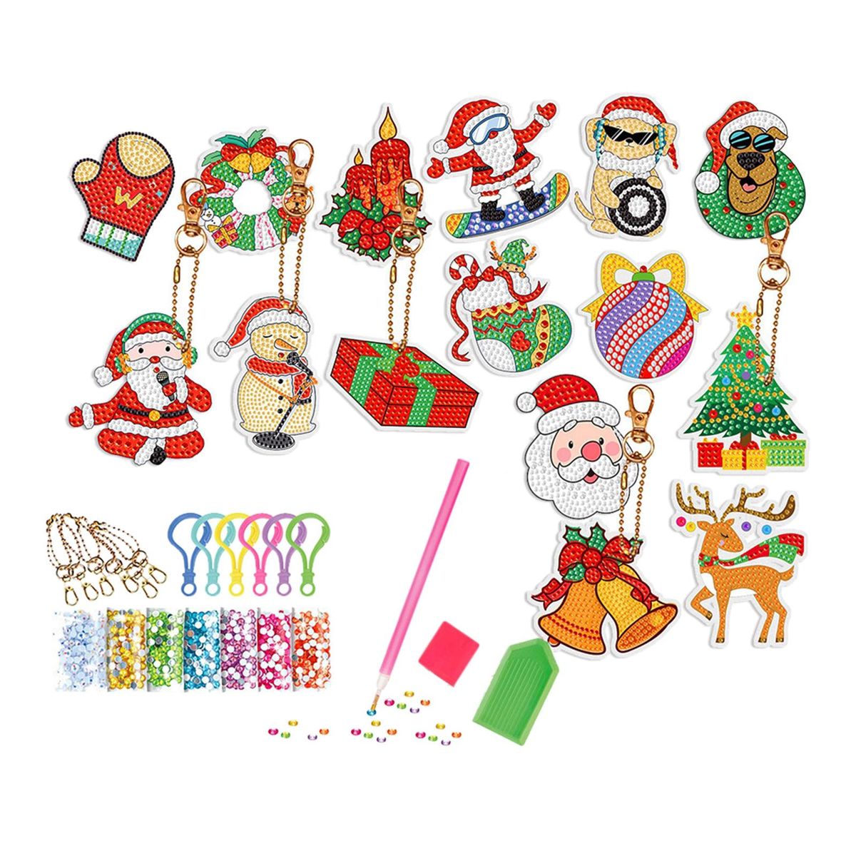 【Christmas Box】: Christmas theme rhinestone pendants DIY set, various shapes, bright colors, unique and lovely, meet your different Christmas decoration needs.