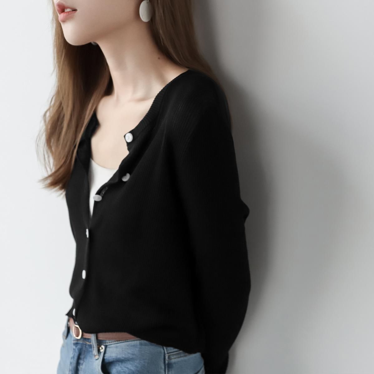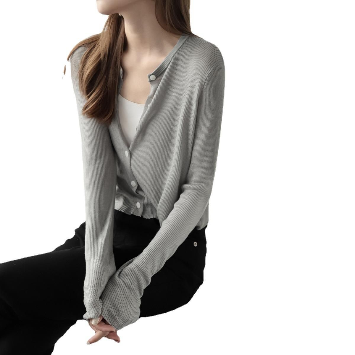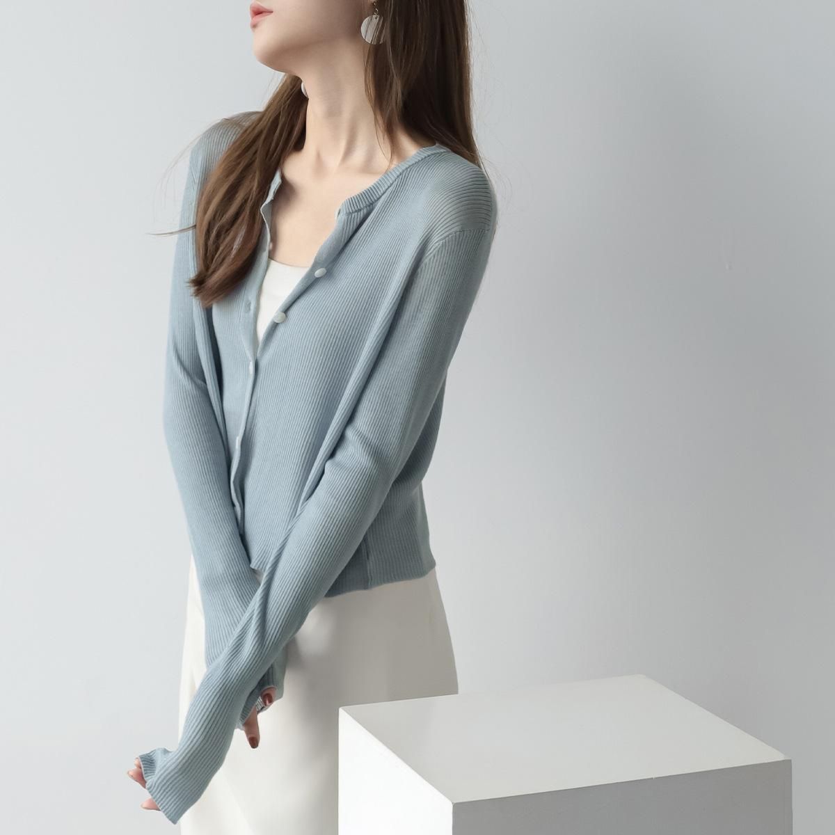 Buy MZOMXL Lanjing Tiansi cardigan with round neck, long sleeved knit shirt for women, gentle and thin in Nigeria