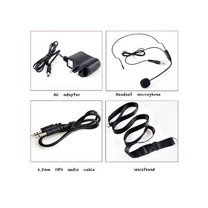 What In the Box1 x Amplifier1 x Headset microphone1 x AC adapter1 x Waistband1 x 3.5mm MP3 audio cable