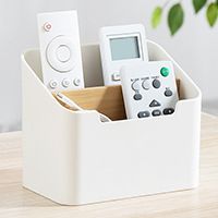 Nachuan Double Grid Bamboo Remote Control Storage Box Living Room Tea Table Sundries Storage Rack Cosmetics Storage And Finishing White.