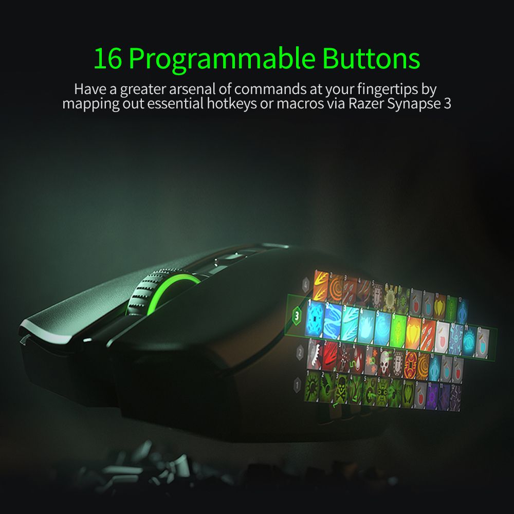 - Have a greater arsenal of commands at your fingertips by mapping out essential hotkeys or macros via Razer Synapse 3, and utilize its advanced feature-Raze HyperShift-to double your inputs with a secondary button profile that can be toggled at the press of a key.