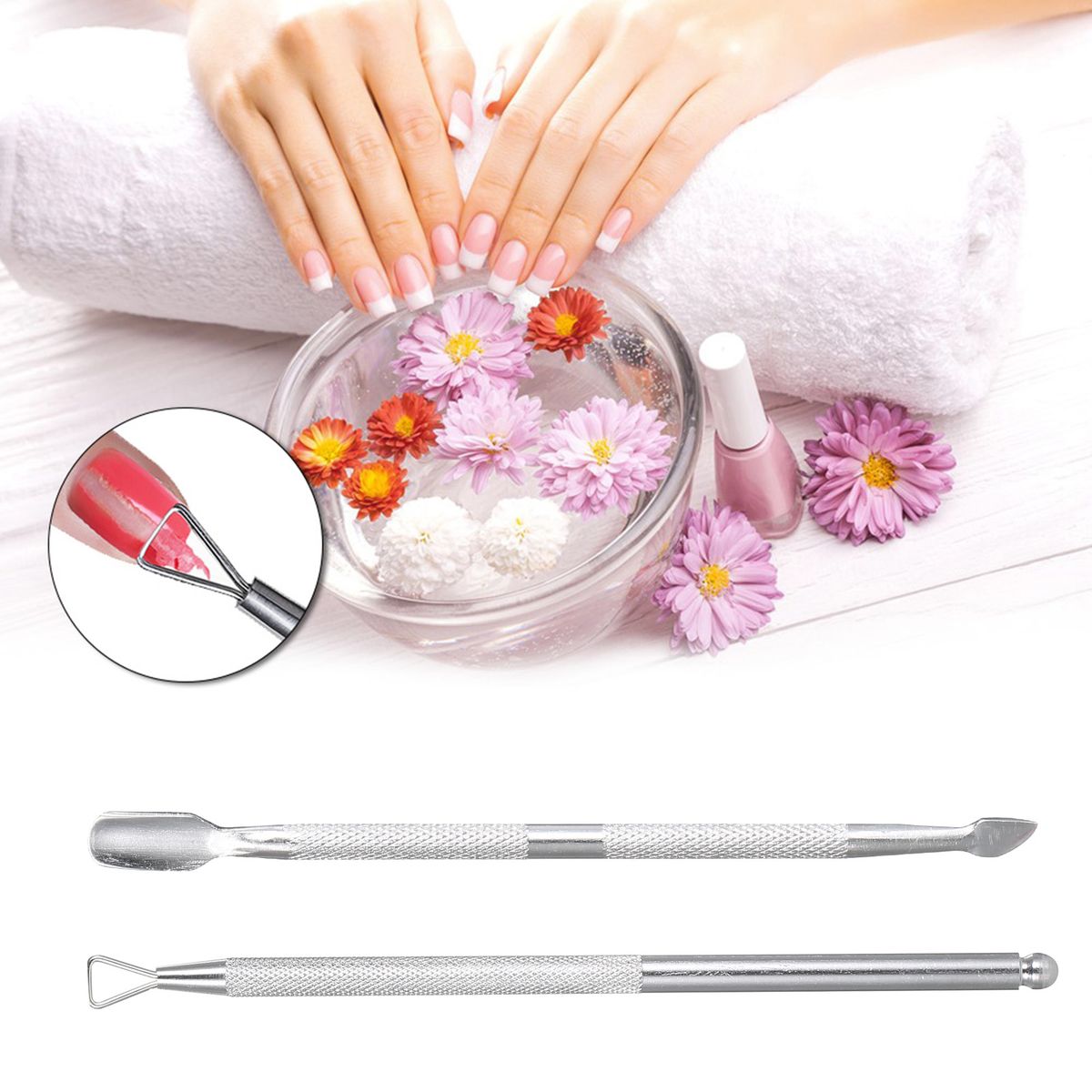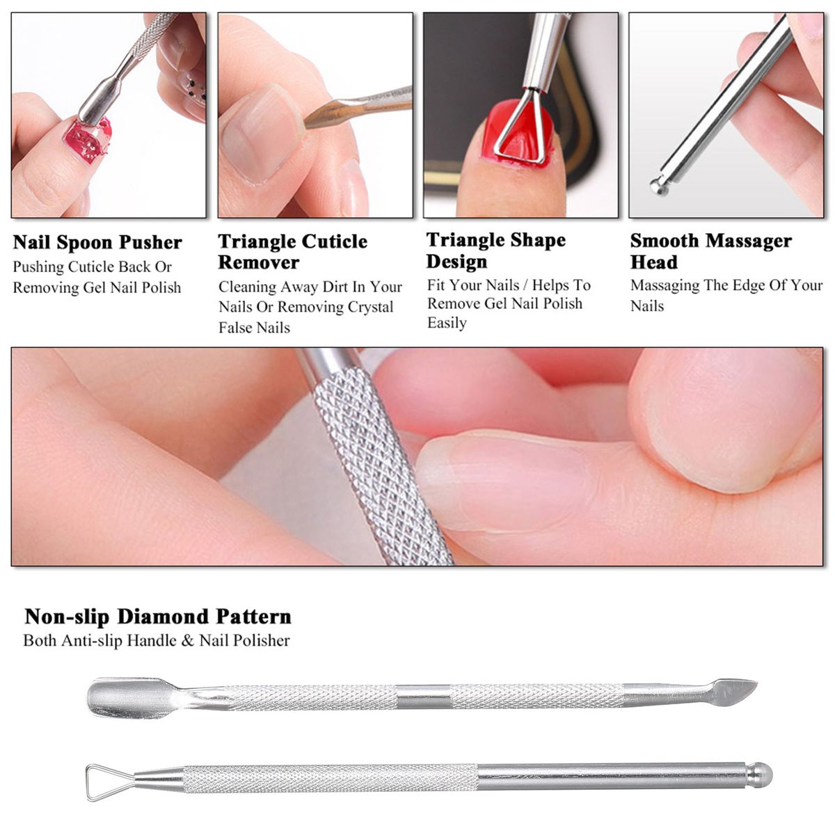 2Pcs double-ended sharp nail cuticle remover with 4 different heads, helps to keep your nails good looking.