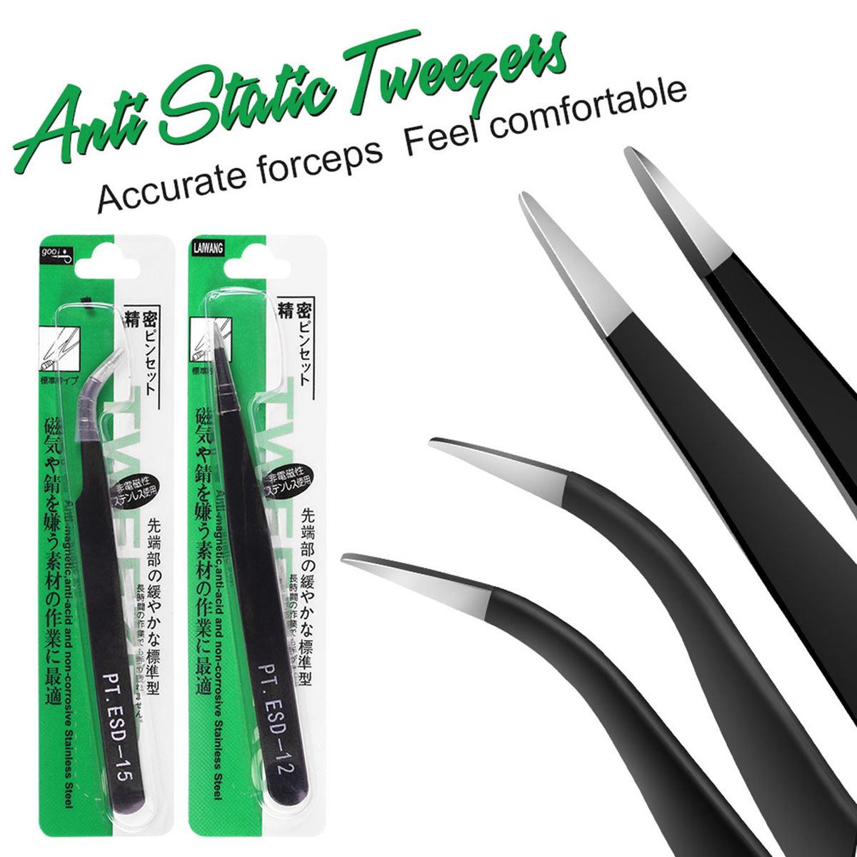 A straight tweezers and a curved tweezers for different needs, accurate clamp, feel comfortable.
