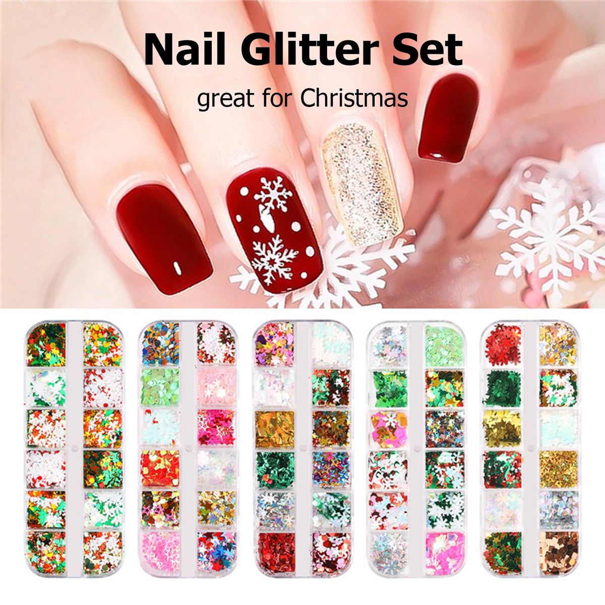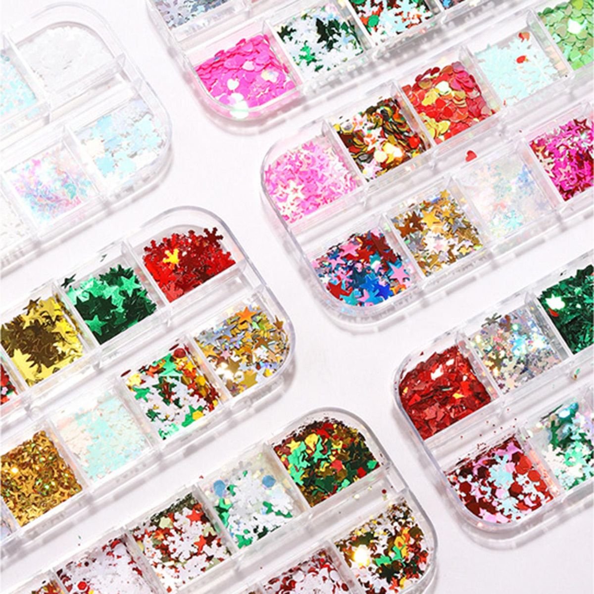 Buy Nail Glitter Set Christmas 12 Blocks of Nail Decors Rhinestones for Nail Art DIY Assorted Nail Glitter Sequins in Nigeria