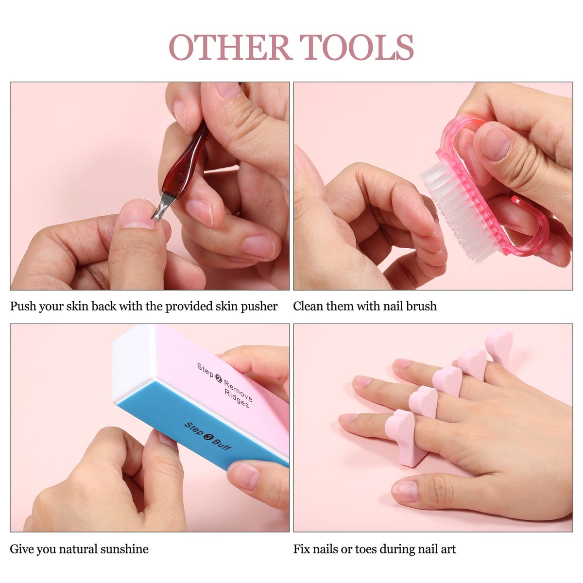 A complete set includes all the basic nail art equipment to create nice Nail Art designs.