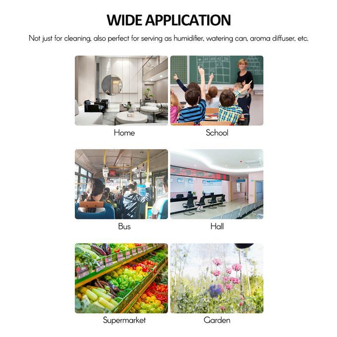2 spray levels meet your various needs. Suitable for home, office, school, hotel, restaurant, workshop, salon, etc.
