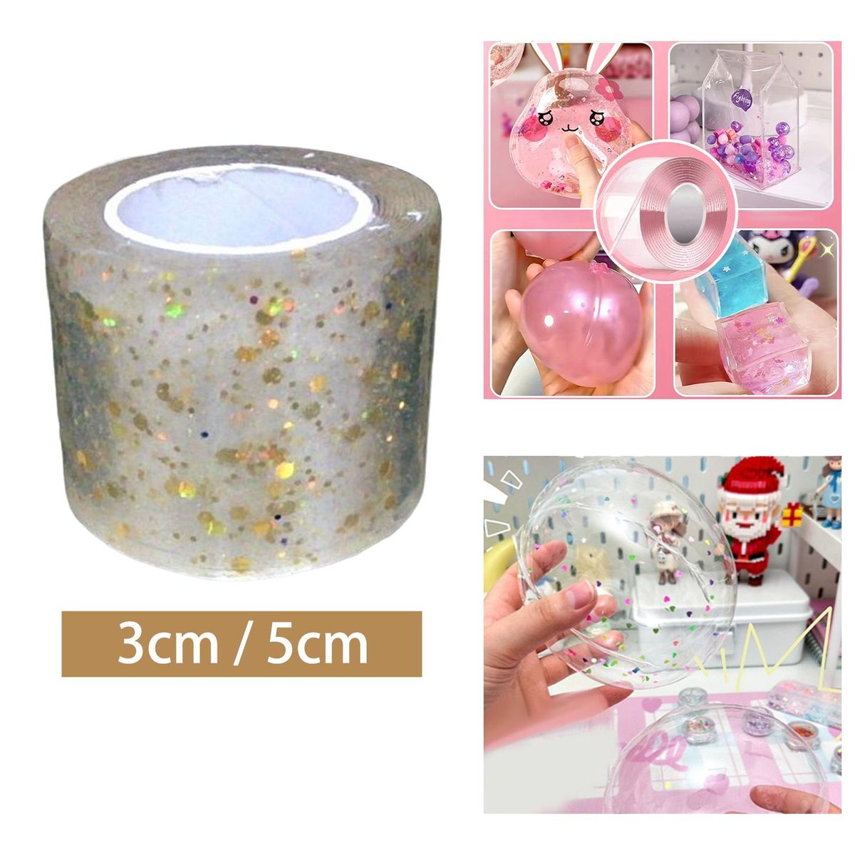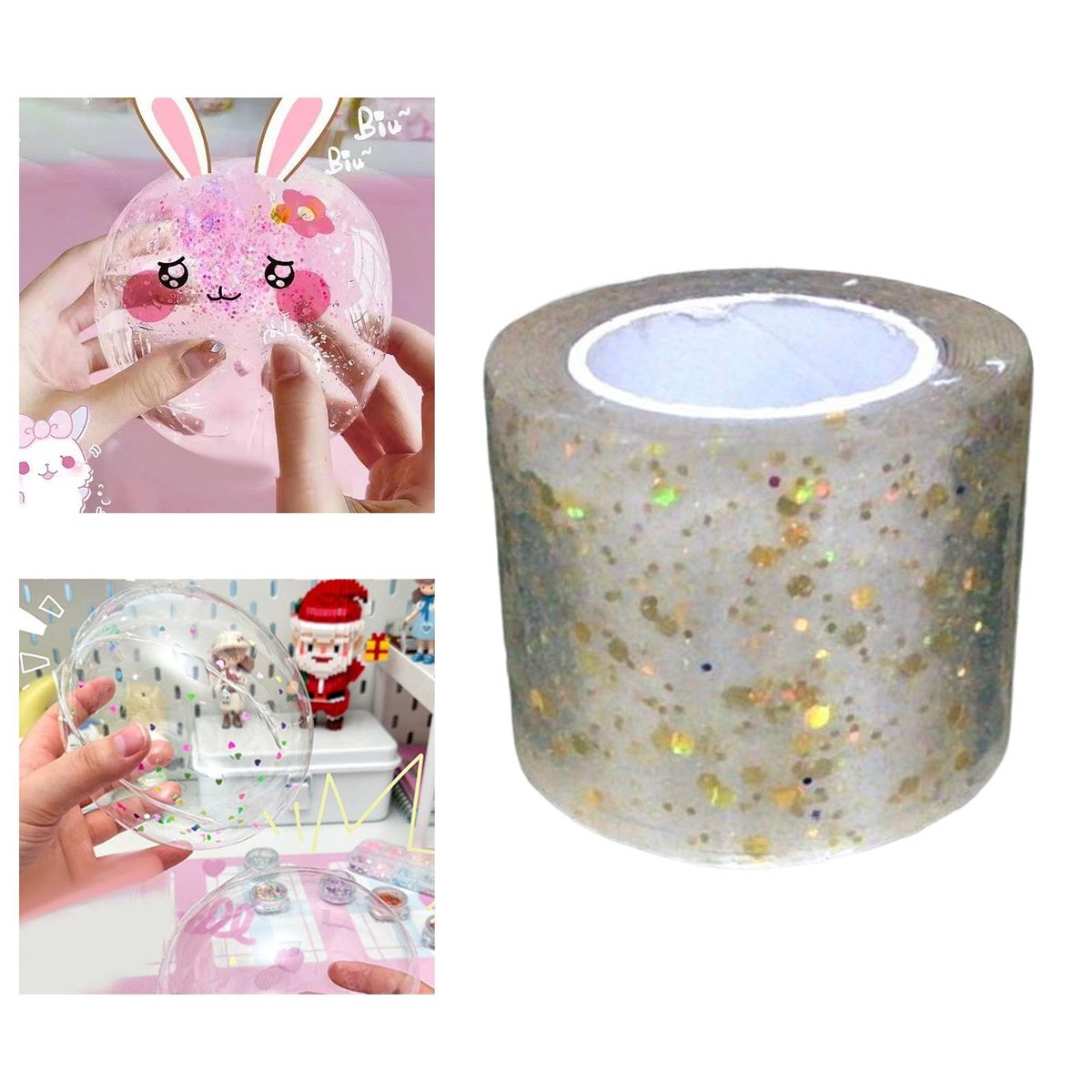 Tapes for Craft;Sticky Double Sided Tape Blowing Bubble;Non Marking Tape Traceless Fixing Home Tape;Kids Adult DIY Crafts Supplies Toy Removable;Glitter Educational Toy Homemade Handmade Ball;Tape Kids Toy Multi Purpose Double Sided Tape
