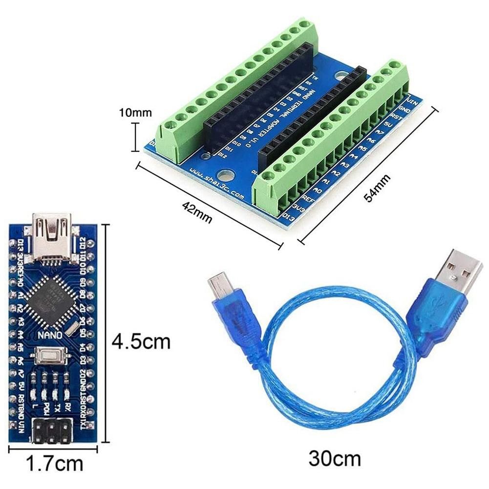 3 in 1 set, the Nano IO Shield board, development board CH340 chip and mini USB cable, specially designed for Arduino Nano Version 3.0.