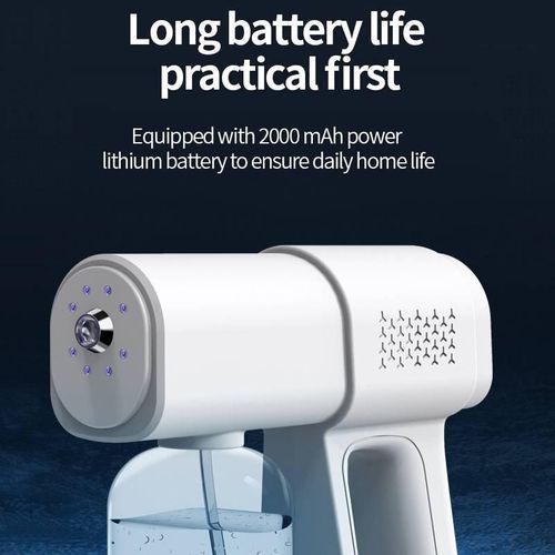 K6PRO New 380ML Wireless Blue Light Steam Spray Disinfection Sprayer Gun USB Charging Product name: Spray Gun Model: K5PRO Size: 223*192*65mm Weight: 650 grams Working voltage: DC3.7V Current: 15W Bottle volume: 380ml Spray distance: 1~1.5 meters Battery capacity: 2000mAh Use time: low gear, continuous use for 70 minutes; high gear, continuous use for 50 minutes Charging voltage: DC5V/1A Charging cable type: Type-C Specifications: Features: spray gun, sterilization at room temperature, very fine water mist, no residue Using dual-core processor, independent boost charging technology, powerful performance, long-lasting stability Achieve -level atomization output, custom-made high-pressure air pumps and siphon atomization nozzles above 5000 rpm The spraying distance can be up to 1.5 meters, and it can be sprayed directly on the surface of the human body, fabrics, home appliances and other objects without the feeling of being wet. Evenly cover no dead corners, easy to clean and thoroughly In addition to daily environmental sanitation and disinfection, it can also replace indoor humidifiers, aromatherapy machines, water replenishers, watering devices, etc. Package Included: 1* Sprayer 1* USB Cable 1* Manual