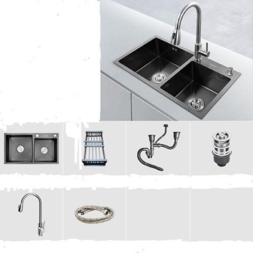 Buy Nano Stainless Steel Dual-bowl Sink Home Kit + Mixer - Silver in Nigeria