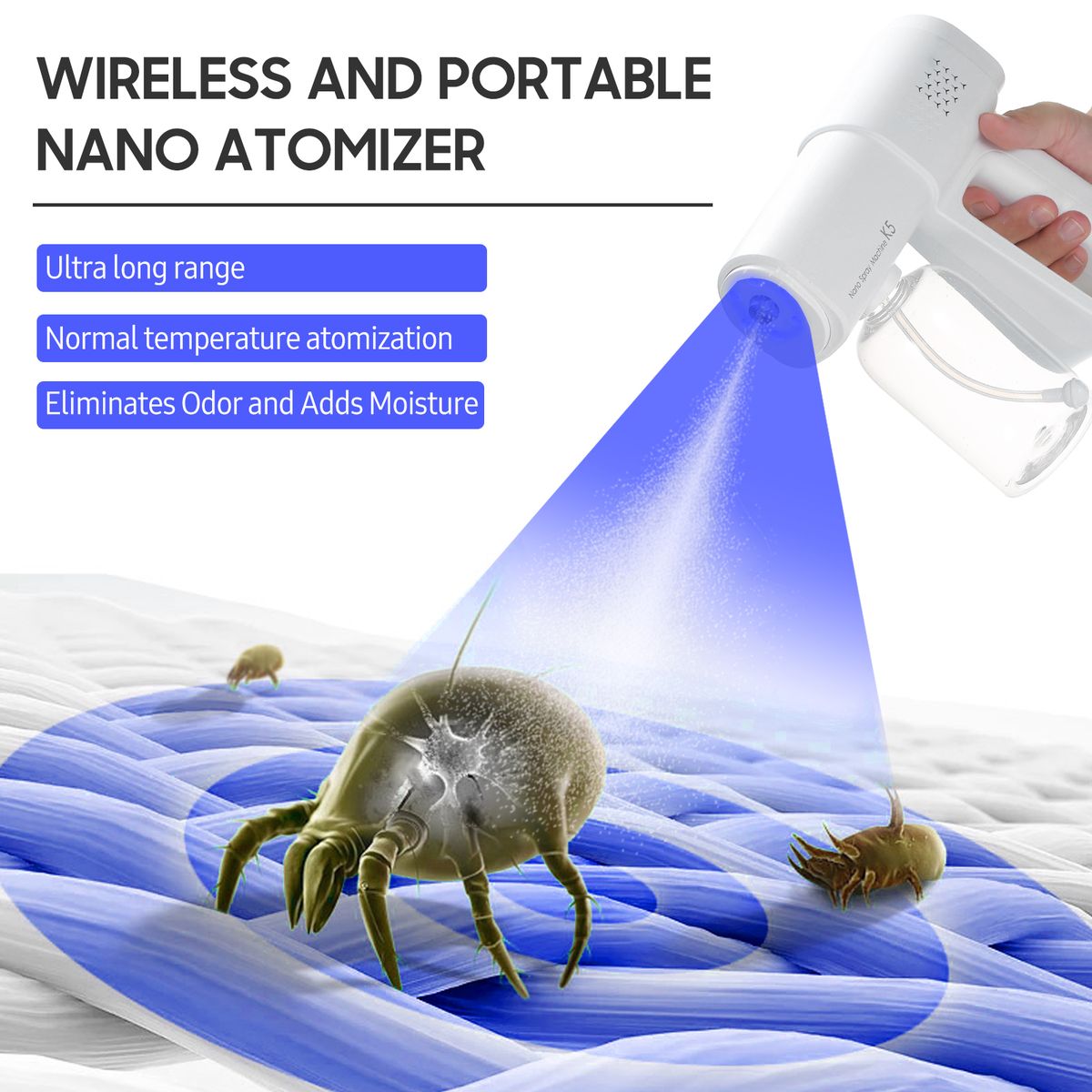 Adopts with nanometer atomization that has strong pressure accumulation ability to produce very large amount yet fine water mist, and has 1~1.5 meters ultra long range of spraying.
