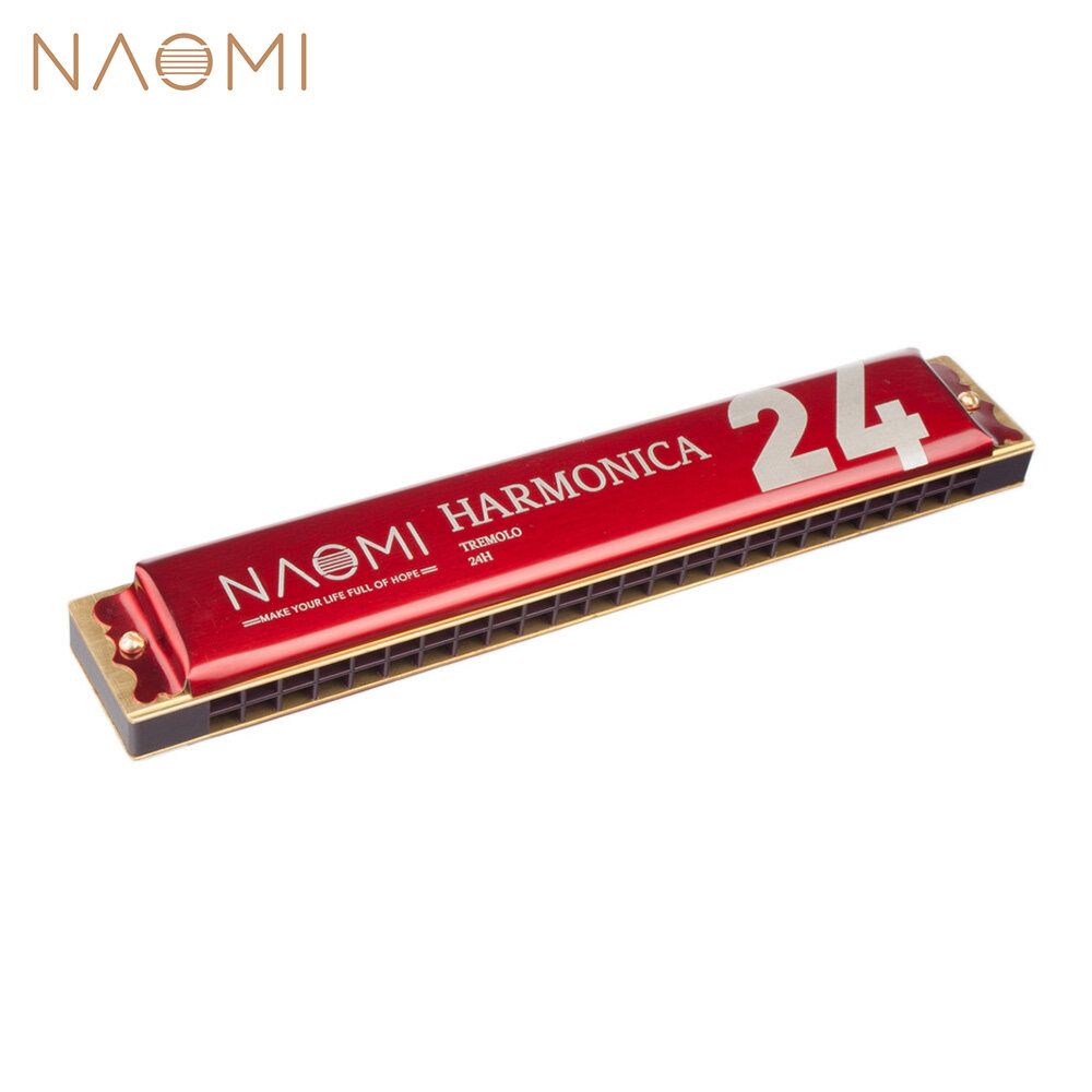NAOMI 24 Holes Key Tremolo Harmonica Stainless Steel Mouth Organ Harmonicas Musical Woodwind Instruments with Case