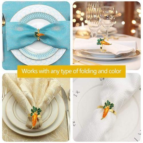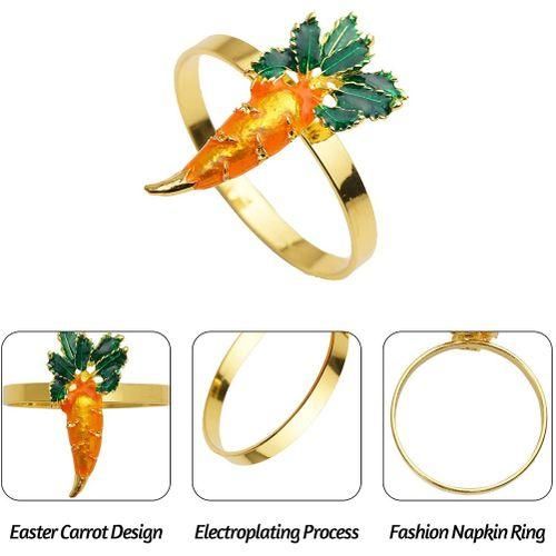 Durable Material: Easter carrot napkin ring holders are made of durable alloy, sturdy and durable, light and delicate, the surfaces are electroplated quite smooth and the edges are smooth.