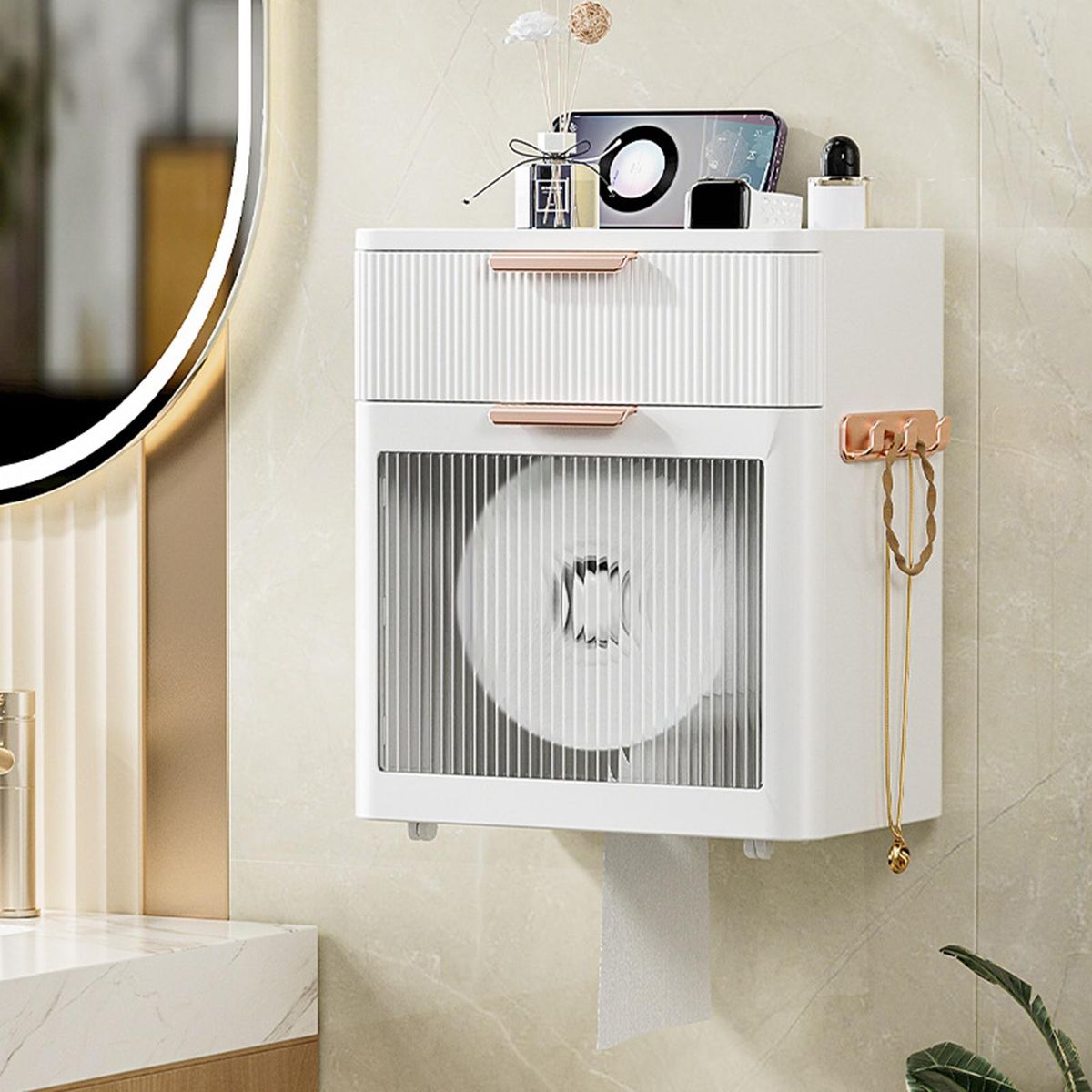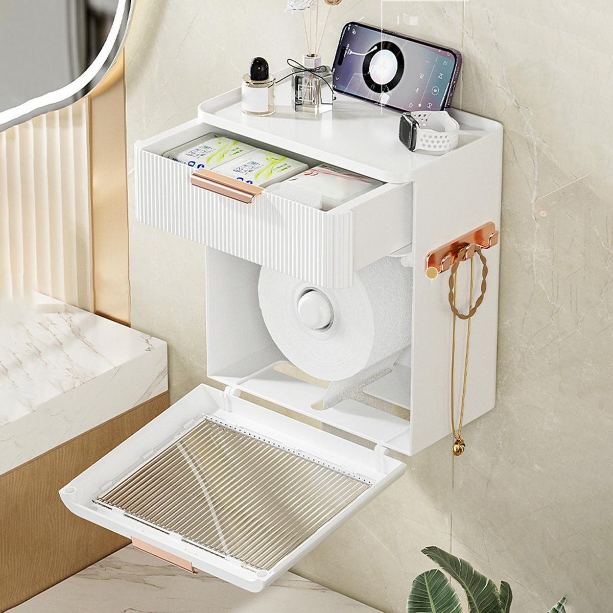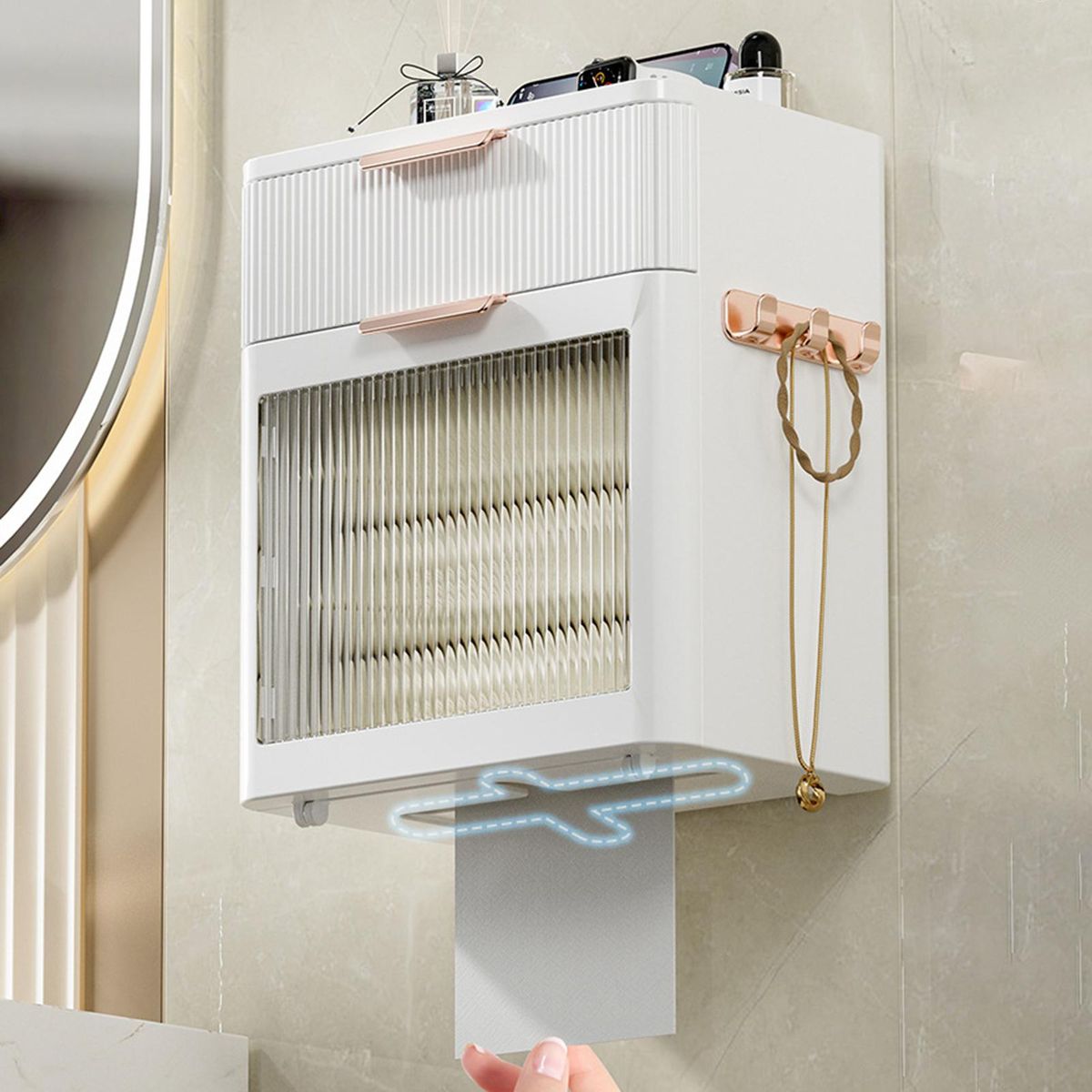 Featuring a large capacity and drawer design, this storage box is great for storing your toiletries or small clothing items conveniently. Besides, it features a removable rod design that is compatible with both pull-out and rolled paper.