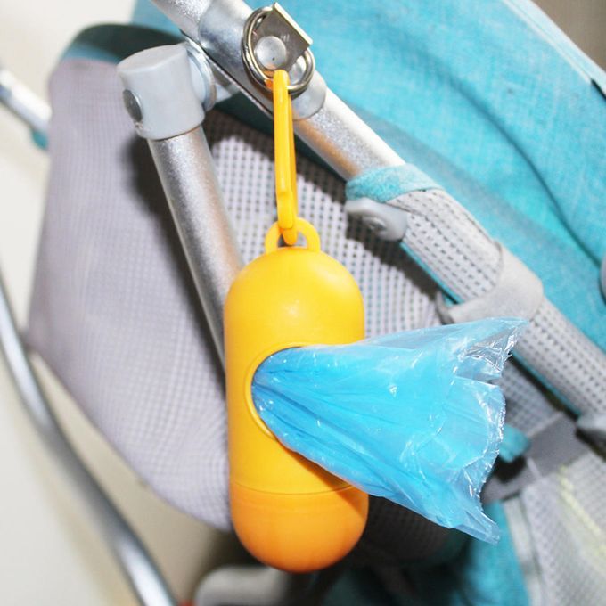 Ideal for diaper bag, stroller, car and at home Compact dispenser conveniently clips to diaper bag.