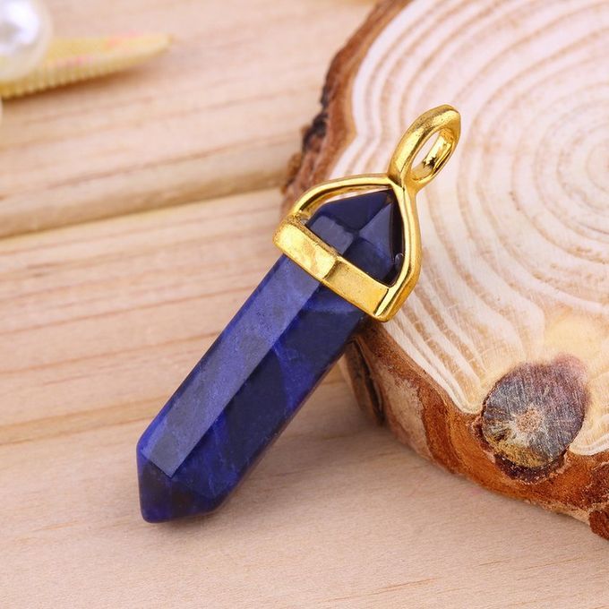 1*Natural Faux Gem S Agonal Pointed Reiki Pendant No Hain-1#