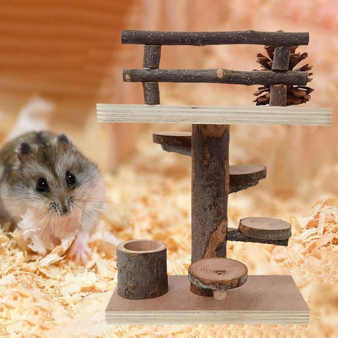 Material: The hamster wooden ladder toy is made of high-quality wood, suitable for molar playing, safe and durable.
