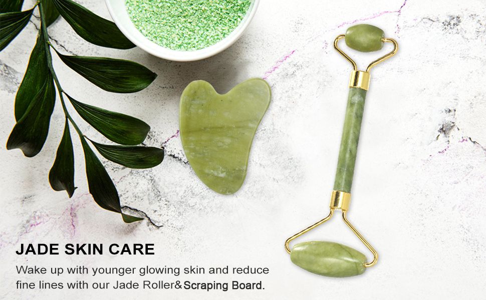【Natural Jade】This stone skincare tool kit is made of natural jade, it can drive healing ions deep into your cells to soothe inflammation, reduce wrinkles, and flush lymphatic waste and puffiness. It also can promote blood circulation and metabolism of skin surface, and promote skin elasticity.