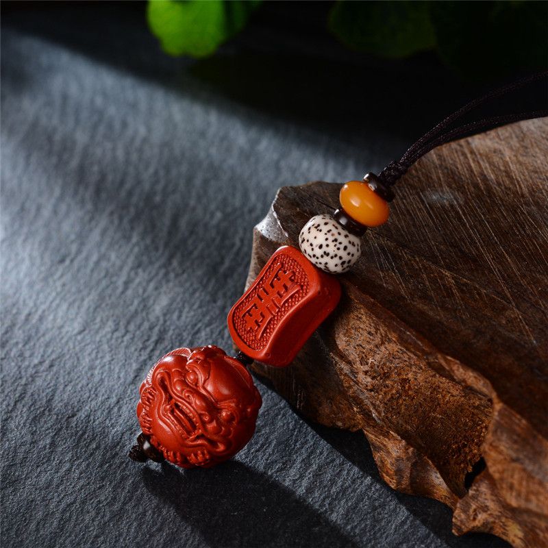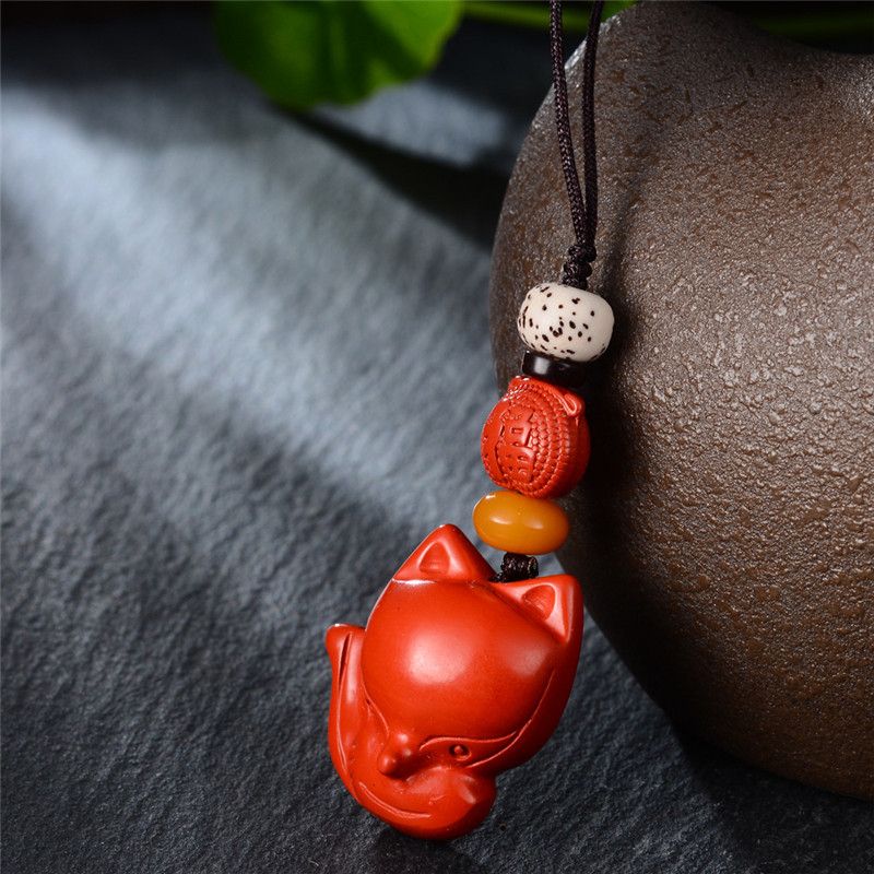 1 * Natural Ore Cinnabar Small Fox Mobile Phone Chain Pendant U