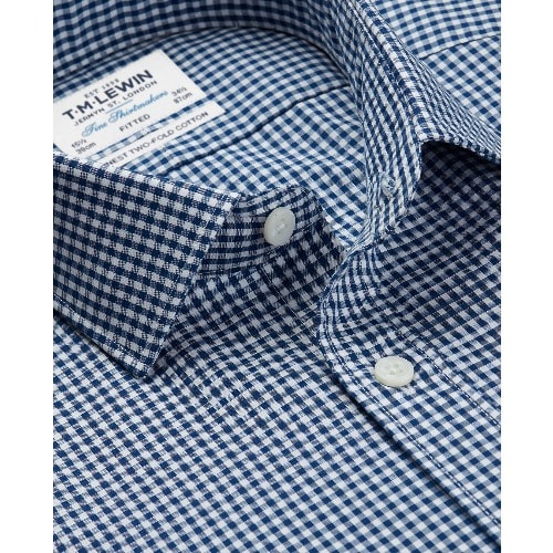 Buy Navy Gingham Fitted Double Cuff Shirt in Nigeria