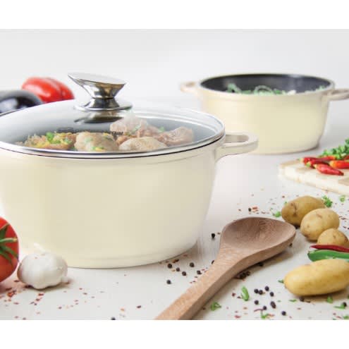 A stylish touch of colour adds a beautiful addition to any contemporary kitchen, but they are so much more than their good looks! Riveted handles ensure durability and safety, while a tempered glass lid with steam vent helps to retain all of the nutrients in your food whilst being able to keep an eye on your cooking.