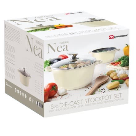 This Stainless Steel 6-Piece Cookware Set features a 9'' casserole pot with lid, 8'' casserole pot with lid, 7'' casserole pot with lid, 6'' casserole pot with lid, 6'' . This cookware set is suitable for all cooking surfaces. As it is made using stainless steel, this cookware set stays strong for years to come. The Stainless Steel 6-Piece Cookware Set has a thermal diffused base for fast heating. The handles are isolated from heat and offer a comfortable grip. The highly resistant glass lids with steam vents keep the moisture locked in and help cook flavorful meals.