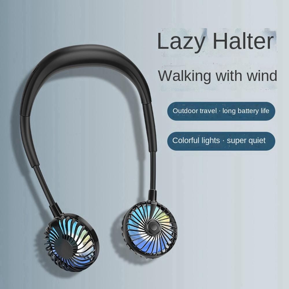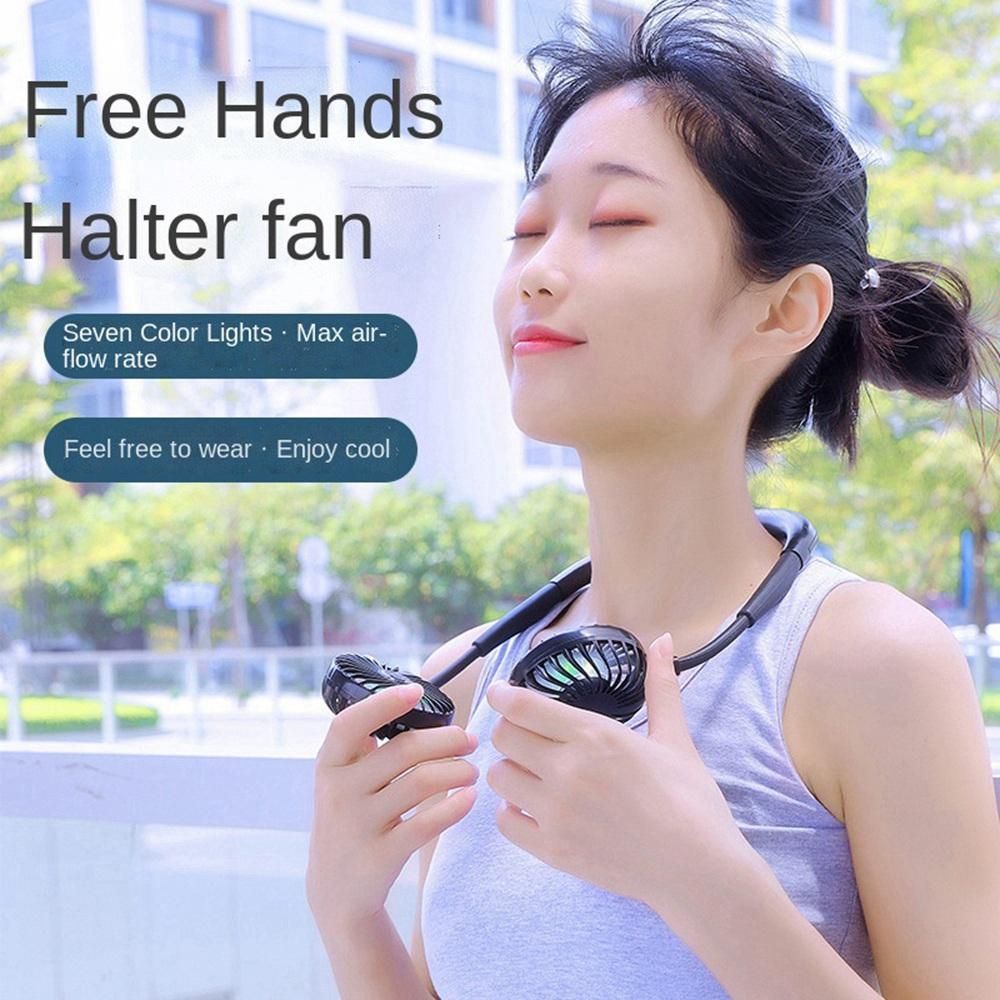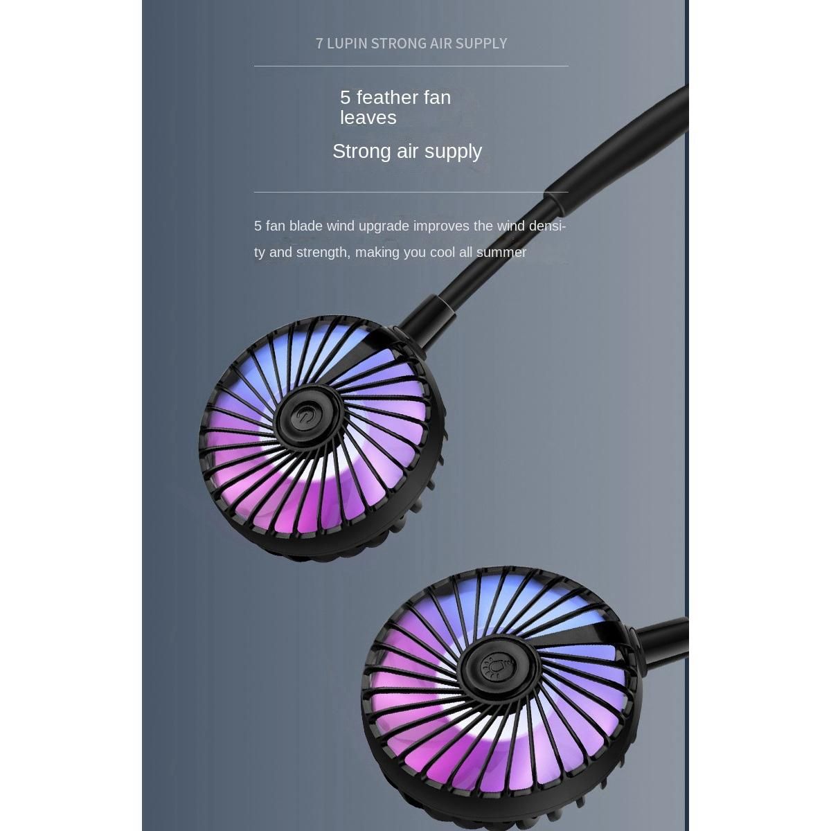 Hands-free design: Unique earphone design, perfectly free your hands. The double head neck fan is also equipped with colorful LED lights. Rainbow lights are cool at night, perfect for night runners