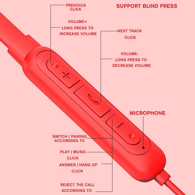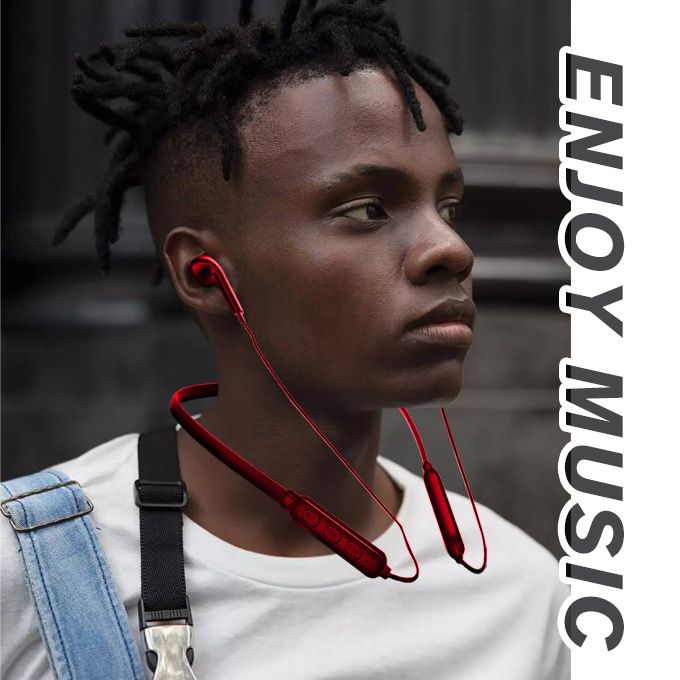 Buy Neck Hanging Wireless Earbud Bluetooth Headset Earphone Red in Nigeria