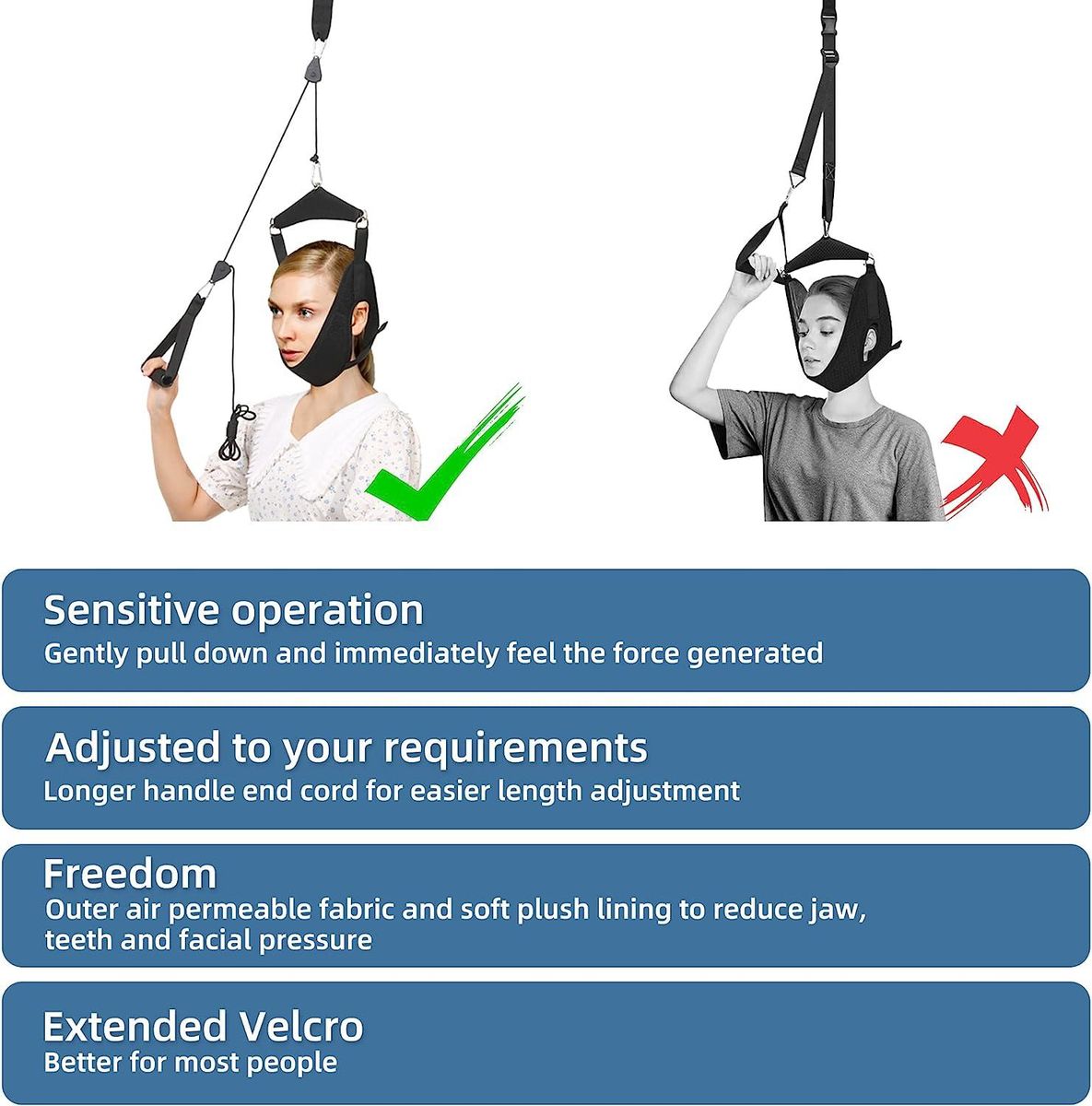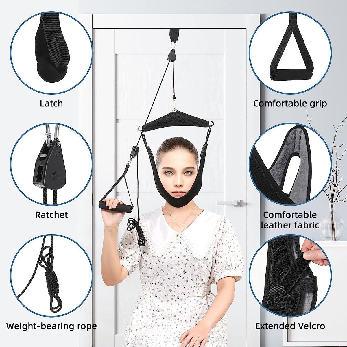 【New upgraded gears】This Neck Stretcher Cervical Neck Traction Device we have upgraded the ratchet, the new ratchet is larger than the old one, the gears are more dense, the pull down process rises slowly, the force is more uniform.More flexible operation compared to similar products using plastic clips.