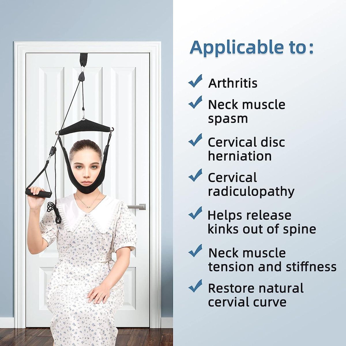 【Easy to install】The portable neck stretcher hammock does not require assembly, connect the traction frame and Traction harness can be used directly. Can be easily put into the bag / suitcase, can be used in any strong doors, hooks, trees, etc.Good fixing effect, durable.The maximum 400-pound weight load. Up-toggle button to release the rope, rope length 78in, adjustable at will.