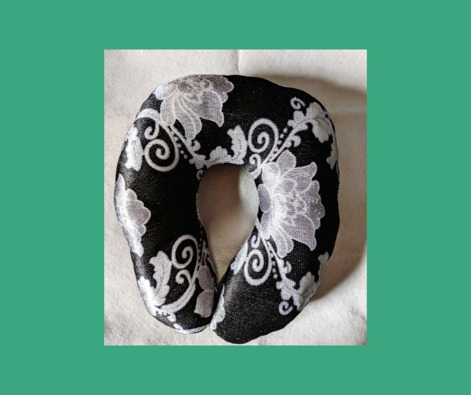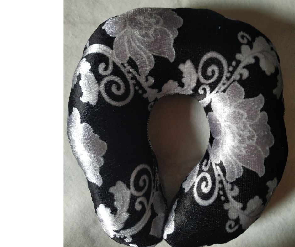 It contains one neck support pillow made of velvet materials and fibres.