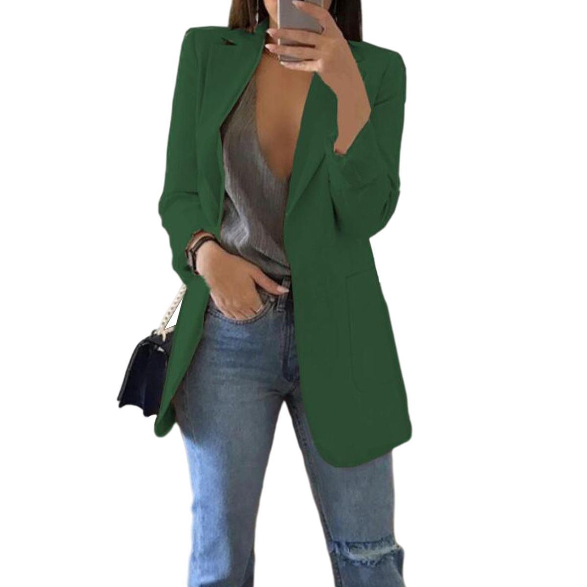 Buy Neckline Long Sleeve Open Front Cardigan Ladies Dark Green L in Nigeria